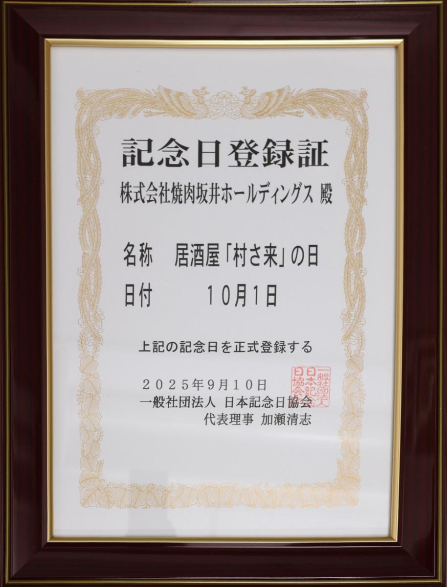 世田谷区経堂に1号店が1973(昭和48)年10月1日にオープンしたことにちなみ、10月1日が「居酒屋『村さ来』の日」に日本記念日協会より正式に登録された。