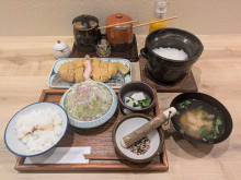 メニューは、「上ロースかつ定食」(100グラム1枚1,529円、2枚2,299円)、「上ヒレかつ定食」(100グラム1,749円、150グラム2,189円)、「上ロースかつ卵とじ定食」(100グラム1枚 1,859円)など。定食には、しじみ汁、浅漬け、キャベツサラダ、炊きたて土鍋ご飯一合が付く。サイドメニューには東の匠SPFポークを使った「大き目な肉焼売(シューマイ)」(429円)や、「自家製なめ茸(たけ)」(429円)、「自家製のり山葵(わさび)」(319円)なども用意する。