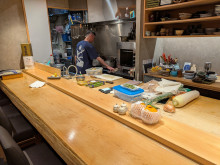 ドリンクは、生ビール(800円)、レモンサワー、緑茶ハイ(以上800円)、日本酒は楯野川(1,500円)、日高見(1,200円)などをそろえ、ワインもグラス・ボトルで用意する。ノンアルコールドリンクも10種類以上をそろえる。飲み放題も5,500円で付けることができる。