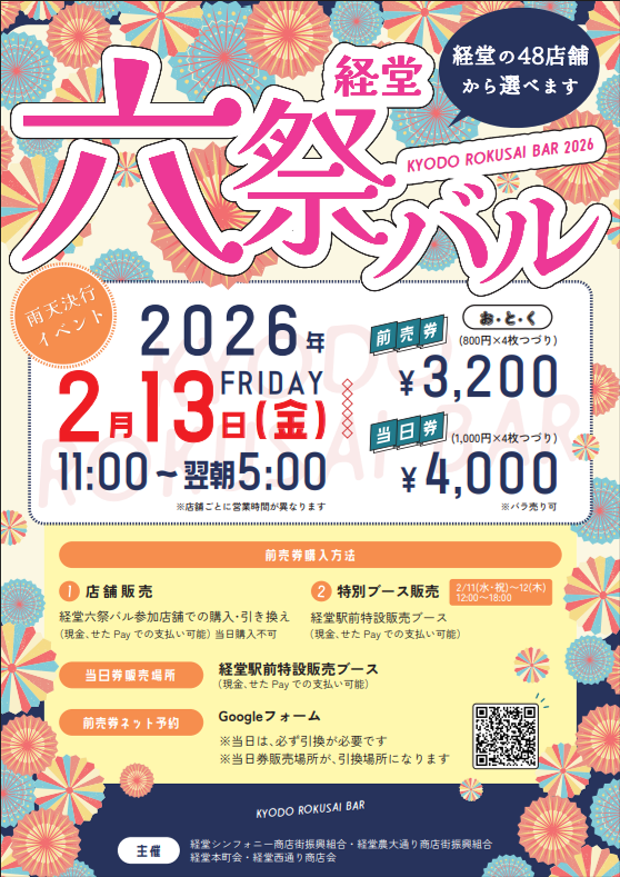 まちバルイベント「経堂六祭バル」が2月13日、小田急線経堂駅周辺で初開催される。