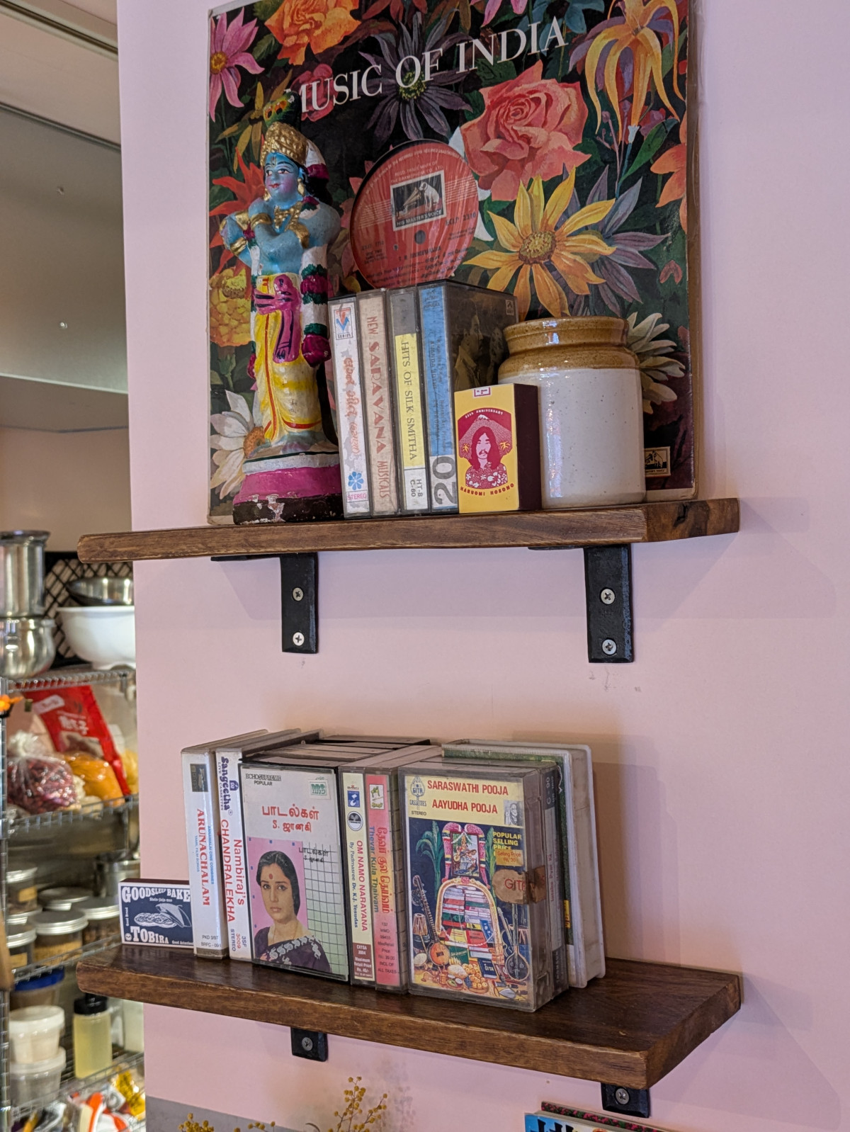 飾られたインド音楽のカセットテープ
